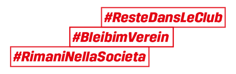 Vous aussi, vous pouvez vous joindre à la campagne « #ResteDansLeClub – Maintenant plus que jamais ! » Les contenus suivants sont mis à disposition des fédérations et des clubs dans l’espace de téléchargement :