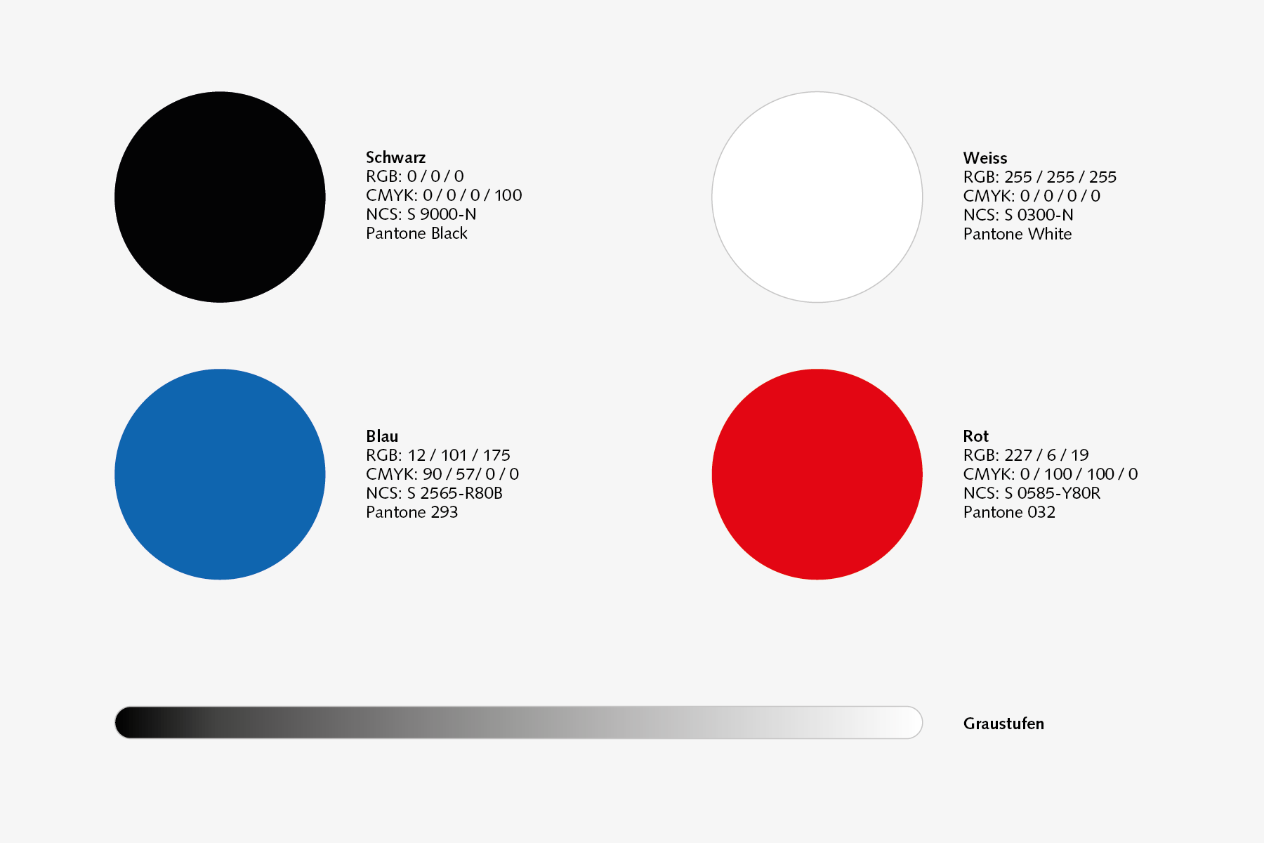 Graustufen können zusätzlich eingesetzt werden. Ebenso kann mit der Transparenz des Corporate Blau gearbeitet werden.