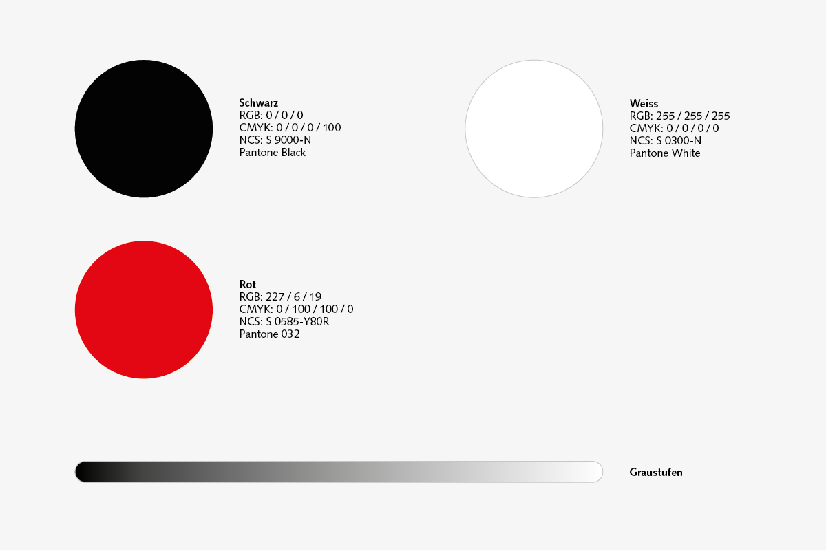 Das Logo steht im Zentrum des Erscheinungsbildes. Die Schrift Syntax, deren Laufweite, Buchstaben- und Zeilenabstände sind darin exakt definiert. Ebenso die Farben und die Logovarianten für spezielle Anwendungszwecke.