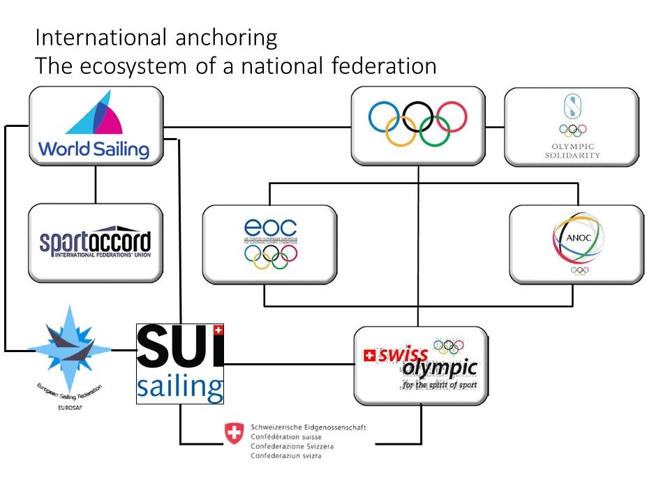Swiss Sailing ist in ein Netzwerk von nationalen und internationalen Sportorganisationen eingebunden und spielt damit eine aktive Rolle für die Zukunft des Segelsports.